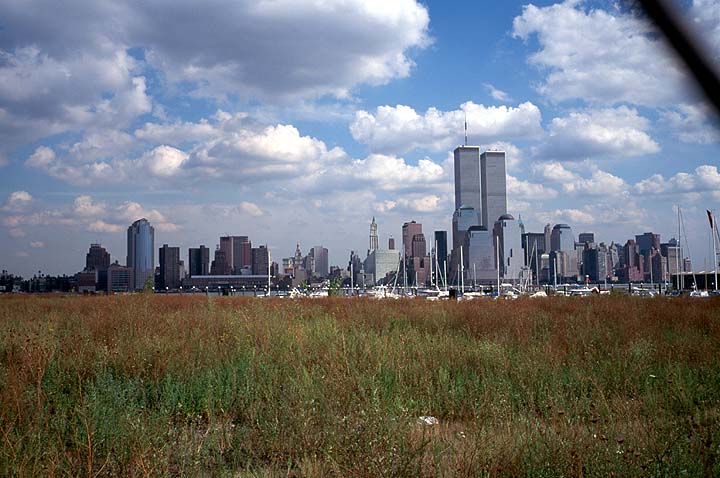 州の違う手前側の対岸は草ぼうぼうの景色が広がっている。マンハッタン島も200年くらい昔はこのような地だったのだろうか。こうした景観を見ると、都市とは荒れ野に浮かぶ蜃気楼のような,はかないものではないかとも思えてくる。